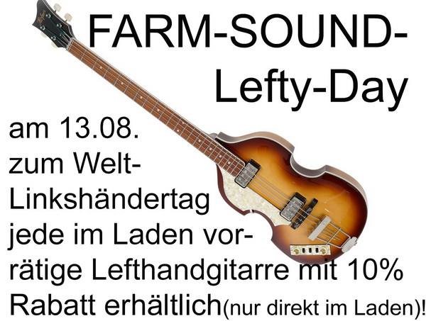 jede vorrätige Linkshandgitarre mit 10% Rabatt.
