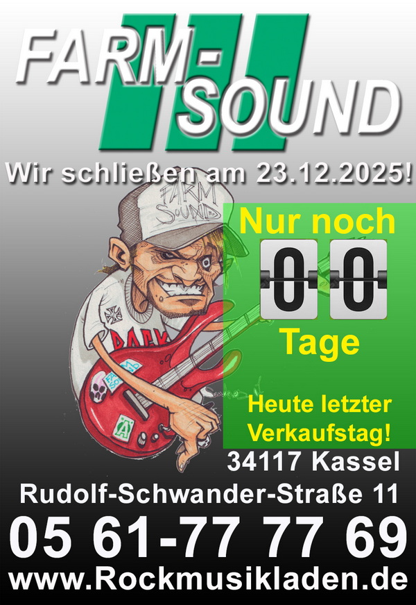 FARM-SOUND-News ![]() FARM-SOUND ist nun leider geschlossen! Wir hoffen Euch bald wieder zu sehen und wünschen Euch ein frohes Fest und einen guten Start ins neue Jahr! ![]() ![]() ![]() ![]() ![]() ![]() Liebe Freunde, Kunden und Lieferanten